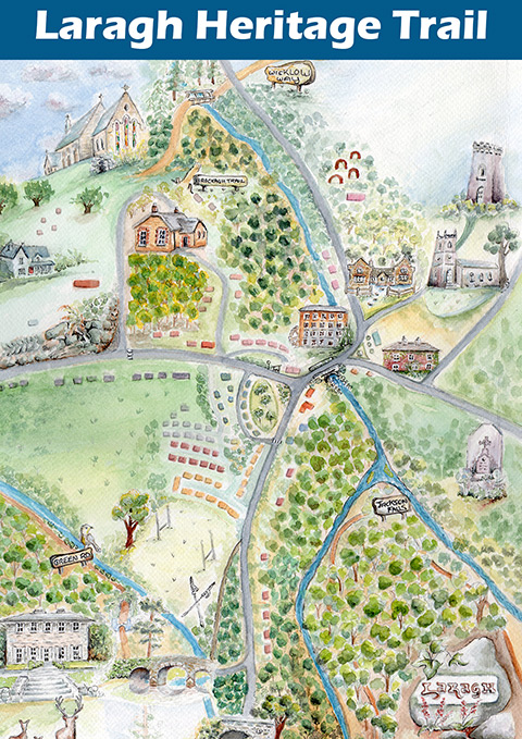Whilst there is not yet a formalised route linking each of the different sites on the Laragh Heritage Trail, this guide will help to familiarise you with the layout of Laragh and its' own history, which is unique to that of our more illustrious neighbour, Glendalough. The trail tells the story of Laragh through a series of protected buildings and structures. It traces its roots to the foundation of Laragh after the 1798 Rebellion and the construction of the Military Road.