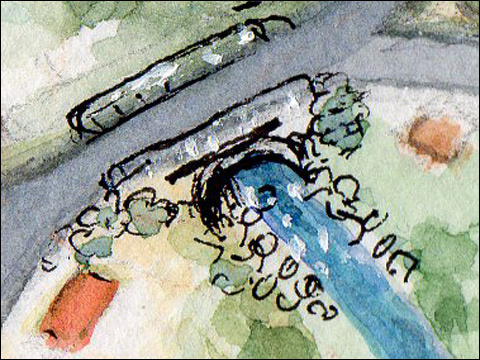 The current bridge in Laragh village crosses the Glenmacnass River and was built in 1955-56. It replaced an older bridge that had fallen into disrepair and may have been part of the original Military Road. The granite coping stones from the previous bridge were re-used and are visible on top of the bridge today.